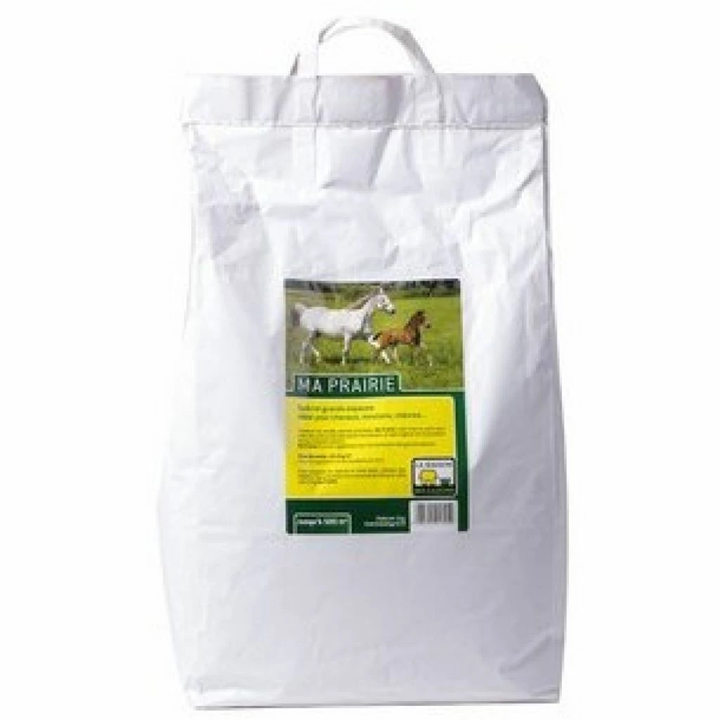 Le Gazon Ma Prairie est un mélange de graminées rustiques et vigoureuses qui permet l’engazonnement de grands espaces et la création de pâtures destinées aux chevaux, chèvres et autres moutons… Cette composition installe un tapis bien vert qui se développe tout au long des saisons. Moins exigeante en eau et en entretien qu’une pelouse classique, cette prairie peut aussi être utilisée pour la création d’un faux semis*. Les graines se sèment de préférence en mars-avril à la volée, au soleil, dans un sol bien préparé et ameubli. Un sac de 5 kg permet de couvrir jusqu’à 500 m².