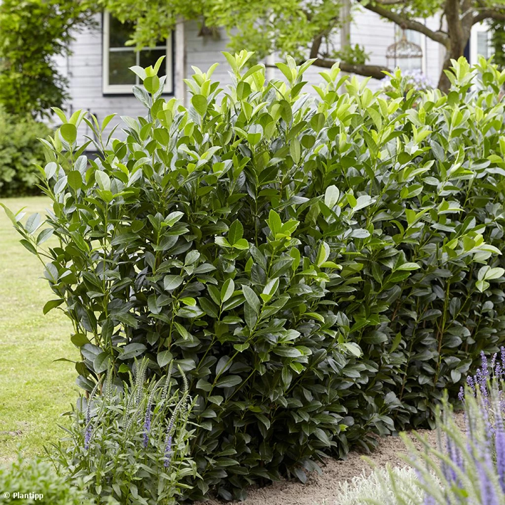 Le Prunus laurocerasus ‘Obelisk’ a toutes les qualités de la parfaite plante de haie. Moins volumineux que le Laurier-palme ‘Rotundifolia’, de croissance modérée, son port érigé limite le besoin en taille sur les côtés. Ses belles feuilles elliptiques vert moyen à foncé ont une texture luisante, sa floraison blanc crème au printemps est utile aux insectes butineurs, et ses fruits noirs, toxiques pour l’être humain, sont appréciés des oiseaux. Aussi utile qu’ornemental, rustique jusqu’à -20°C, poussant aussi bien au soleil qu’à l’ombre et dans la plupart des sols, c’est l’archétype de la plante du débutant.