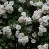 Ce grand rosier obtenu par Sander et Fils en 1912, sélectionné à l’époque parmi environ 4000 semis, il demeure encore aujourd’hui une référence parmi les rosiers lianes. Il atteindra facilement 6m de hauteur pour une envergure de 4 m. Ses longues tiges sont souples et gracieuses, entièrement couvertes d’un feuillage très sain, vert foncé et brillant, contrastant merveilleusement avec la floraison d’un blanc pur. Les fleurs de cette liane se forment en juillet, puis plus sporadiquement en septembre. Elles naissent sur sur de courtes pousses de la 2ème année, en boutons blanc pur. Elles s’épanouissent en rosettes d’un blanc neigeux, doubles, comptant plus de 40 pétales, et mesurant 3 cm de diamètre. Elles sont rassemblées en grappes très denses tout le long des tiges flexibles. Légère malgré son abondance, sa floraison exubérante recouvre dès la première année de culture le support mis à sa disposition. Les petits fruits qui font le régal des oiseaux à la mauvaise saison sont en réalité des faux fruit charnus appelés cynorrhodons. Ils renferment une grande quantité d’akènes à une seule graine.